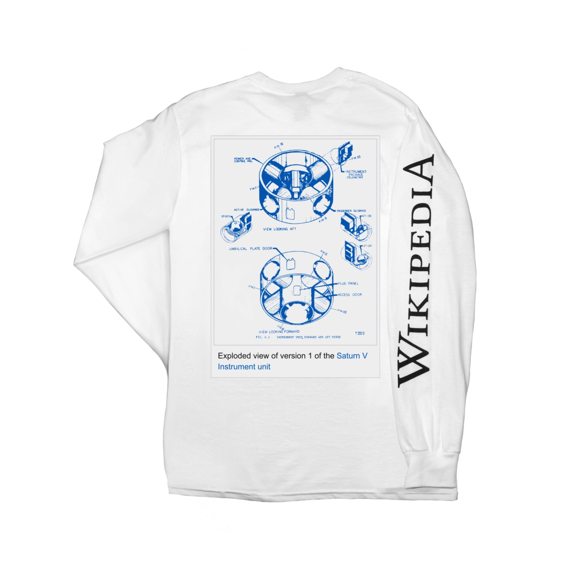 The Saturn V long sleeve t-shirt commemorates Wikipedia’s 25th birthday with a nod to human ingenuity.